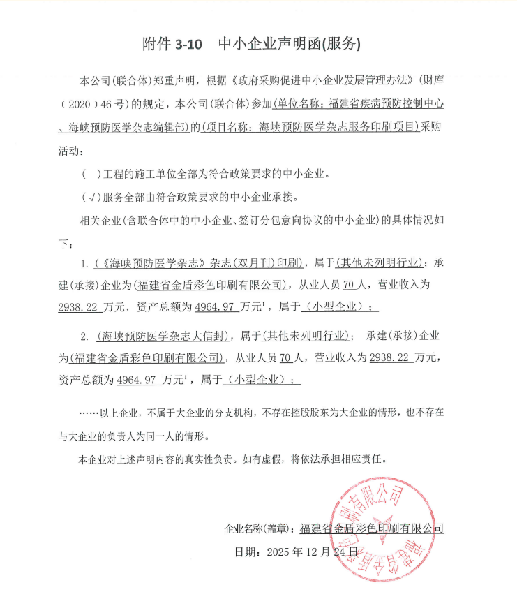 二、项目名称:海峡预防医学杂志服务印刷项目